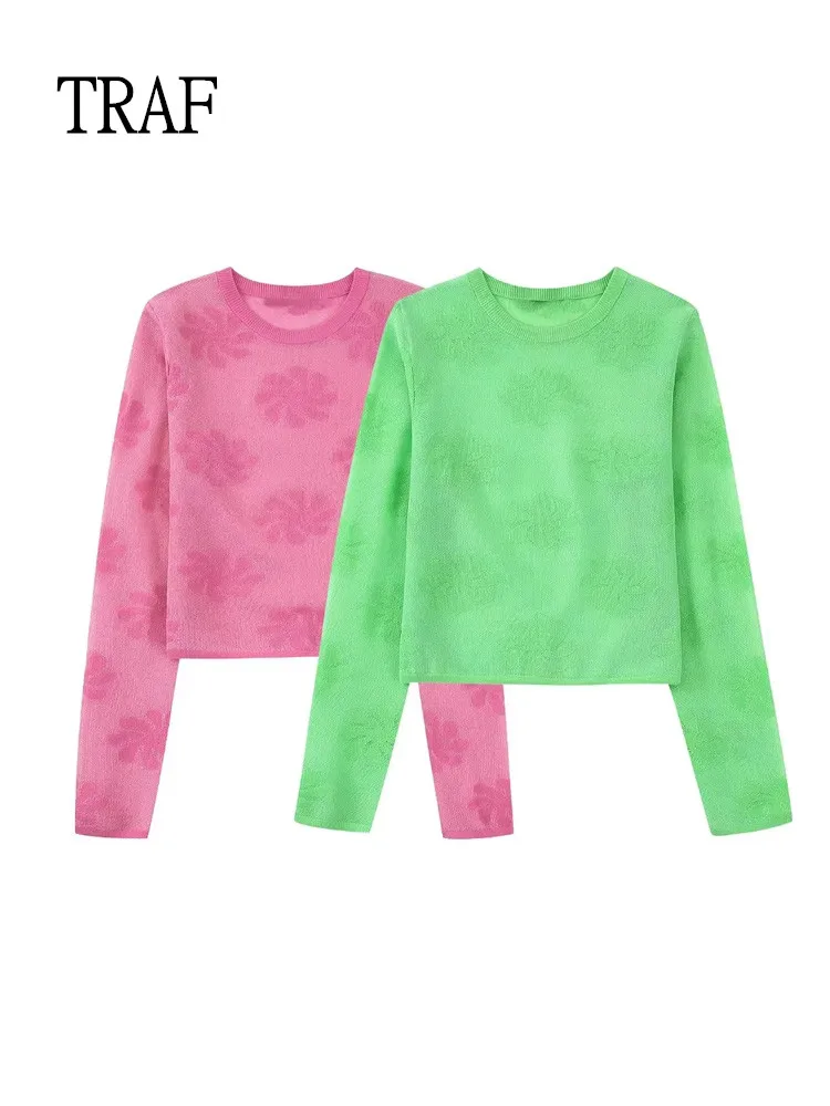 Женский свитер с длинным рукавом, круглым вырезом и винтажным принтом