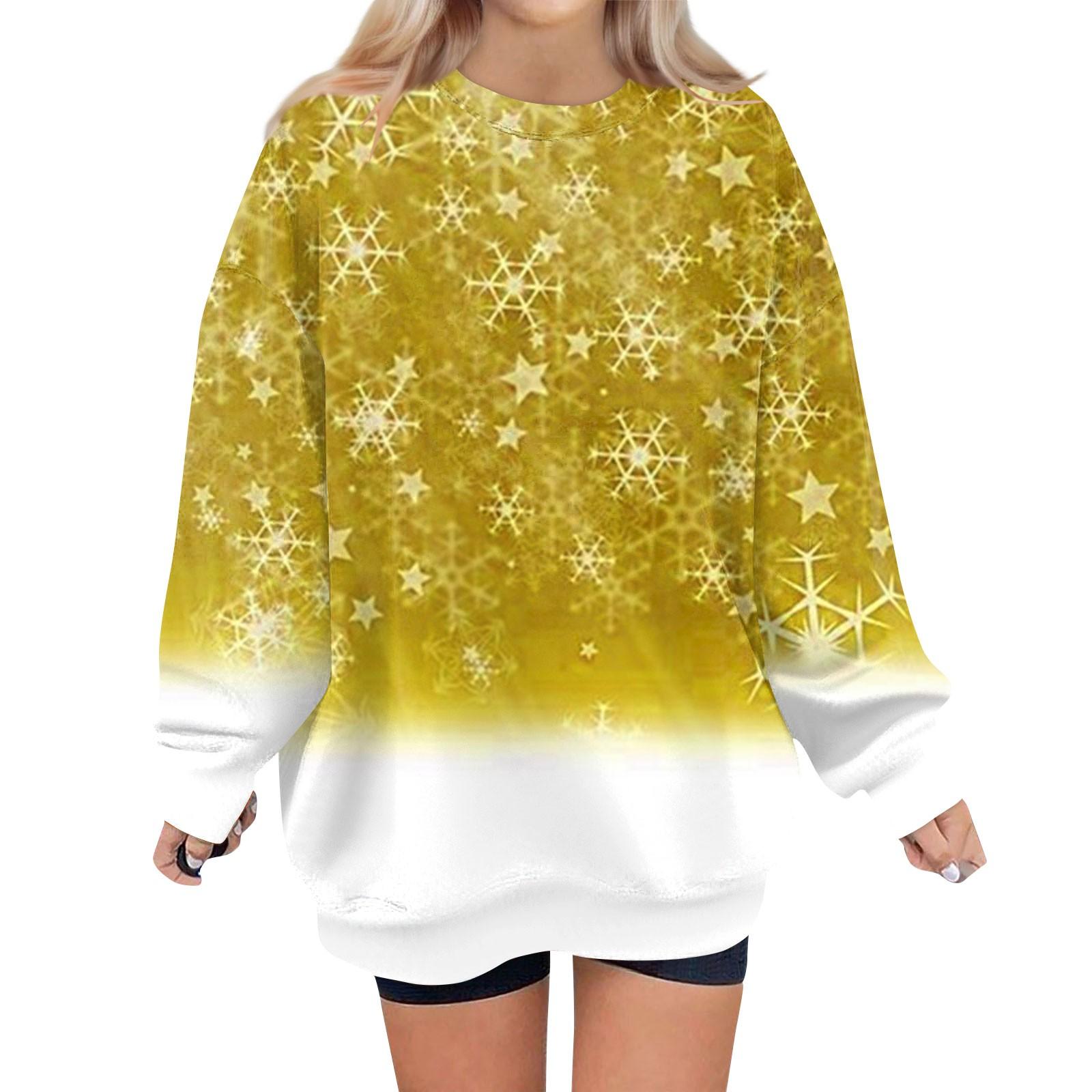 Женский свитер с круглым вырезом и длинными рукавами с рождественским принтом, худи XL жёлтый