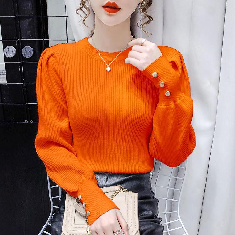Женский свитер с рукавами-фонариками, облегающий топ для осени и зимы, трикотажная блузка 2XL оранжевый