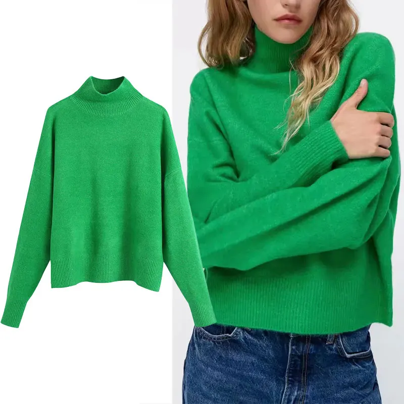Женский свитер 2021, модная водолазка оверсайз, вязаные свитера, Женский винтажный Повседневный пуловер с длинным рукавом, топы
