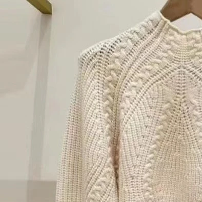 Женский свитер 2023, пуловер с узором, пуловер с боковыми пуговицами и рукавами-фонариками для ранней весны