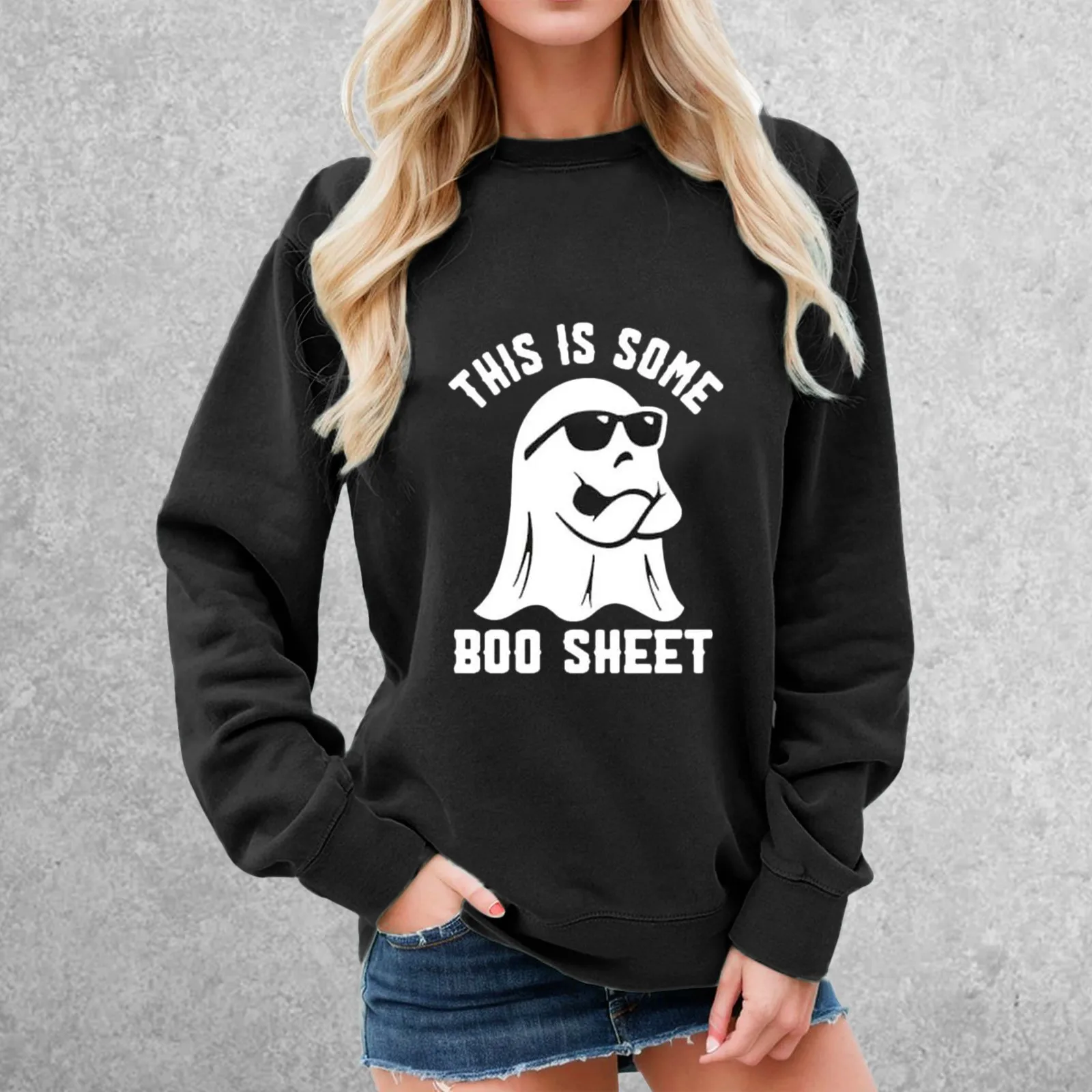 Женский свитшот с графическим принтом на Хэллоуин, толстовка с капюшоном с забавным принтом призрака, Свободный пуловер с длинным рукавом и круглым вырезом, это простынь Boo