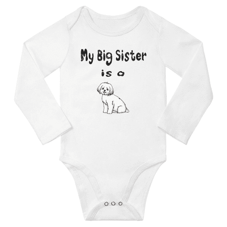 My Big Sister is a Maltese Dog Cute Baby Long Sleeve Bodysuit Boy Girl (White 18-24M)