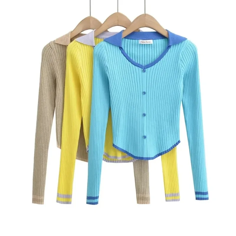 Женский свитшот Y2k, вязаный свитшот с загнутыми краями, новинка 2023, Приталенный свитшот на пуговицах с лацканами, милая одежда