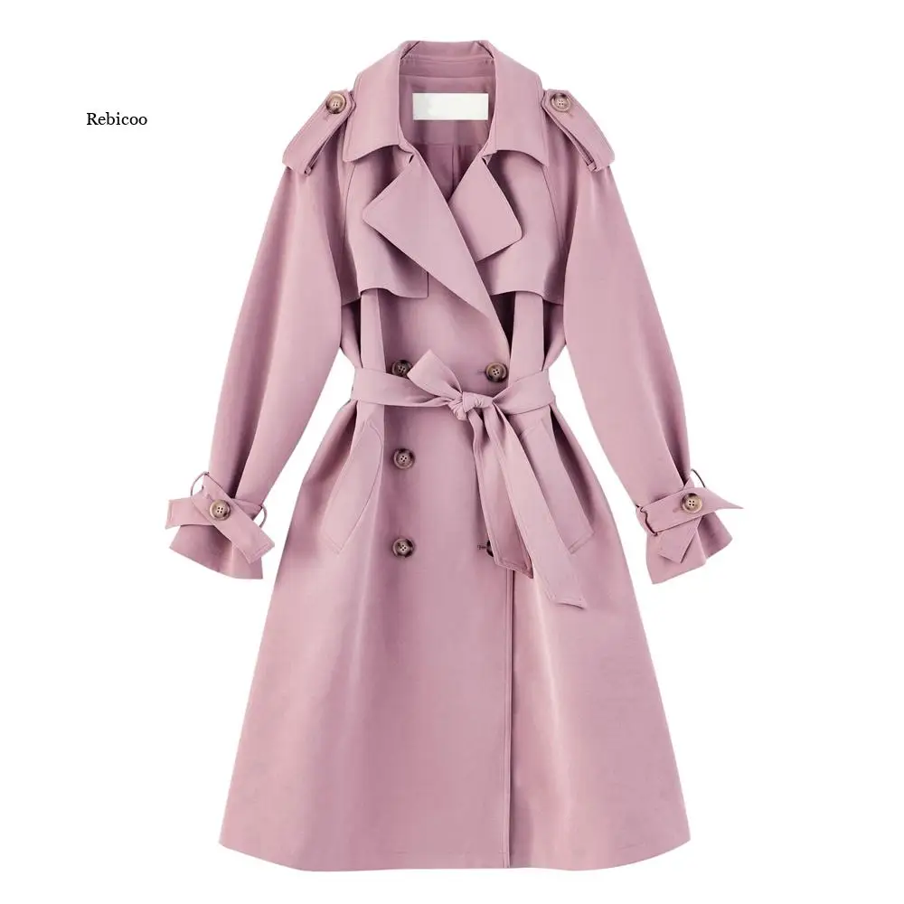 Женский свободный Тренч с отложным воротником, длинное пальто большого размера, уличная одежда