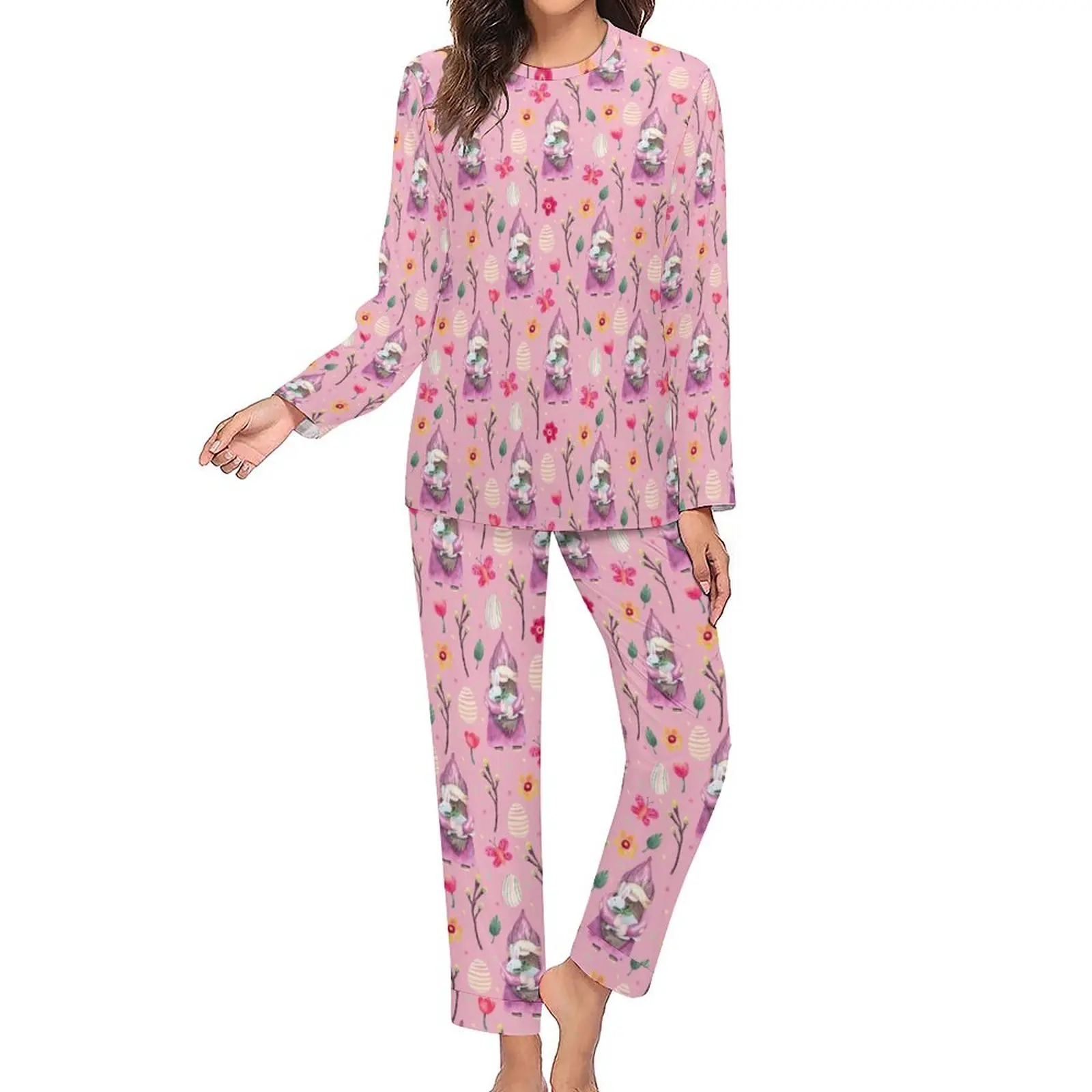 Женский свободный пижамный комплект из 2 предметов с принтом в виде кролика