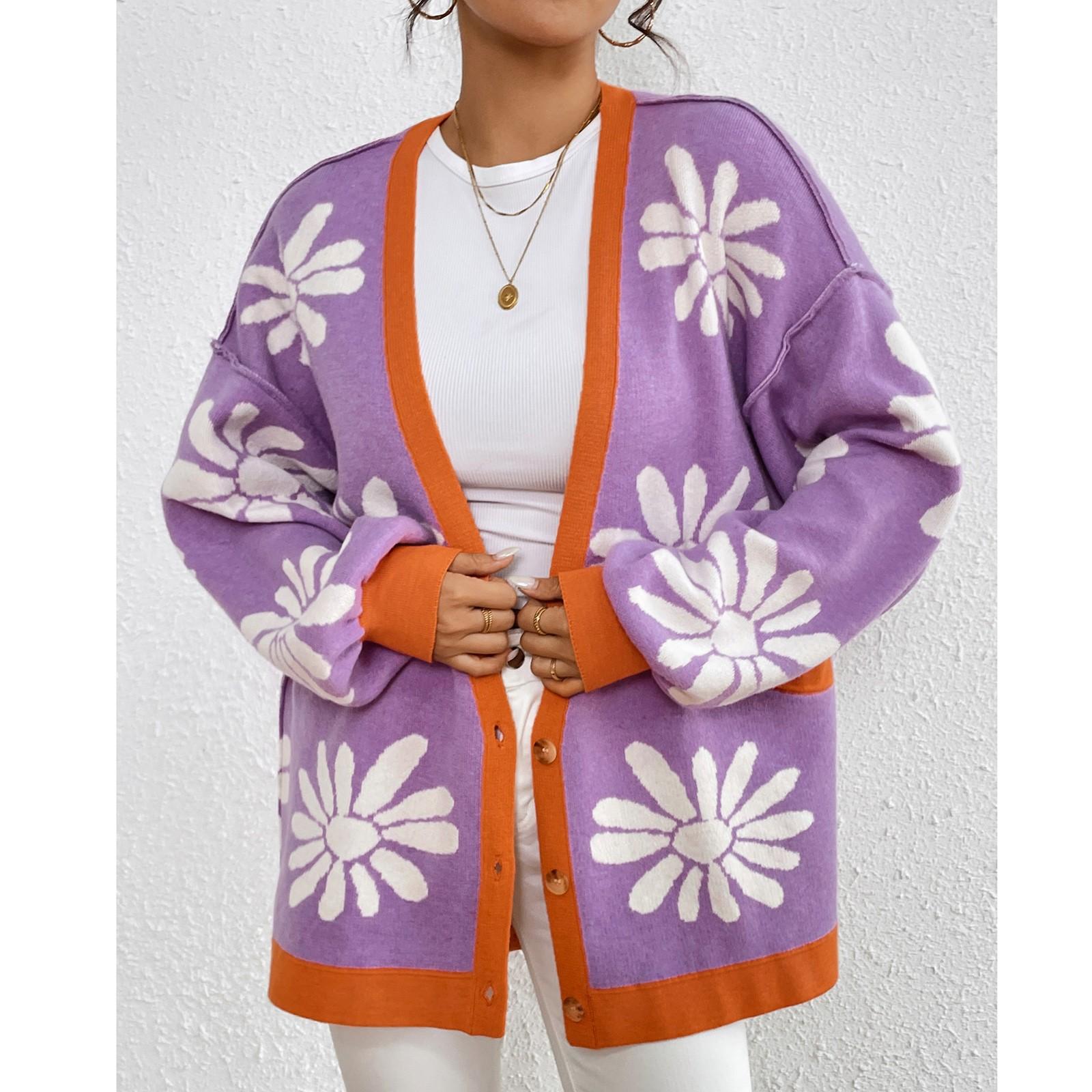Женский свободный повседневный кардиган с длинными рукавами, свитер, куртка, модная куртка XL фиолетовый