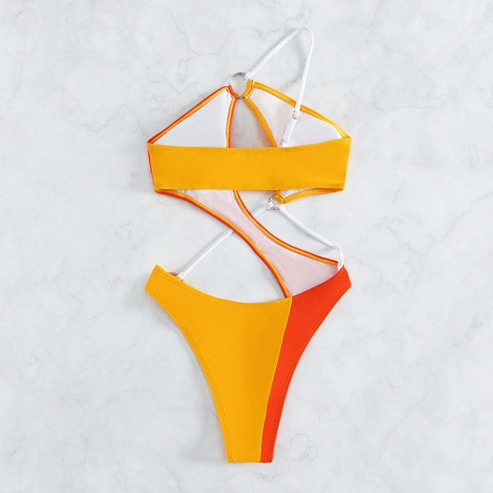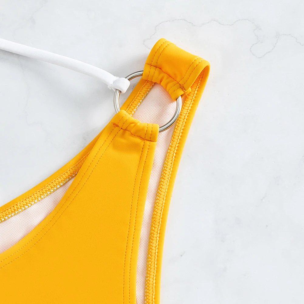 Женский сексуальный купальник-бикини, купальник-бикини с вырезами, купальный костюм с завязкой, купальный костюм с лямкой на шее