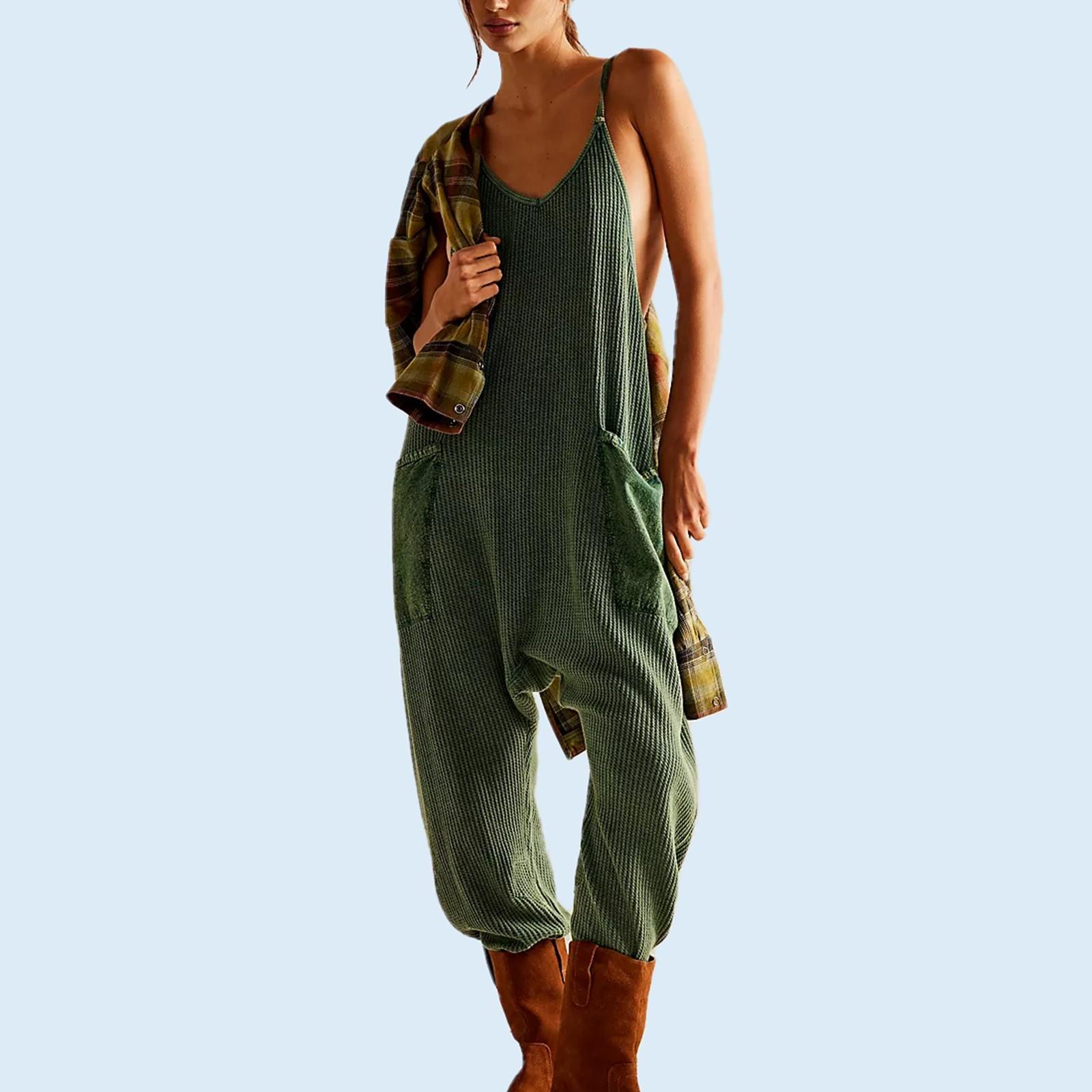 Женский сексуальный однотонный комбинезон с брюками и открытой спиной на бретелях S армия зеленый