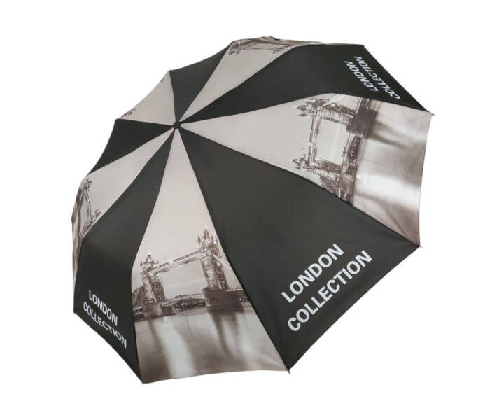 Женский складной зонт полуавтомат London от Feeling Rain черно-серый, Разные цвета