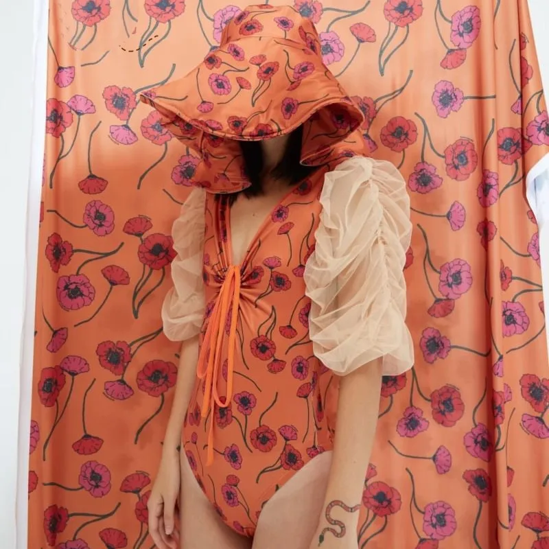 Женский слитный купальник с длинным рукавом, V-образным вырезом и цветочным принтом