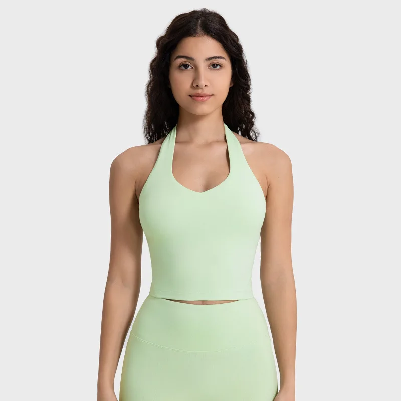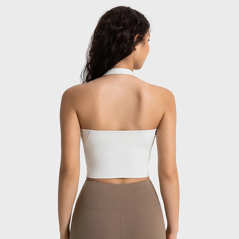 Женский спортивный бюстгальтер с глубоким V-образным вырезом и лямкой на шее