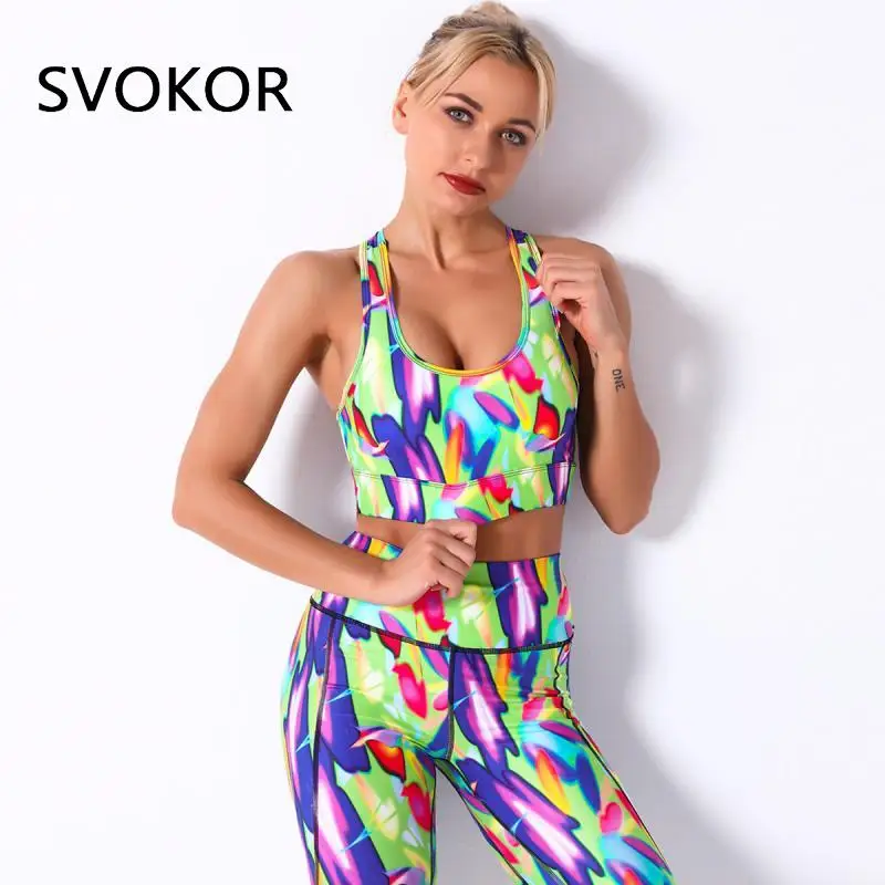 Женский спортивный бюстгальтер SVOKOR, дышащий бюстгальтер пуш-ап с принтом для фитнеса, тренировок