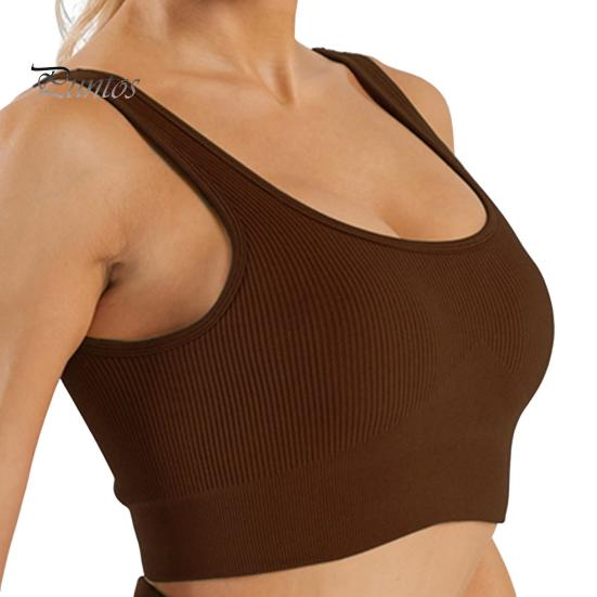 Женский спортивный жилет, бесшовный, съемные нагрудные накладки, облегающий крой, U-образный вырез, высокая эластичная трикотажная летняя майка, женская нижняя часть, верхняя одежда, укороченная йога L темный кофе