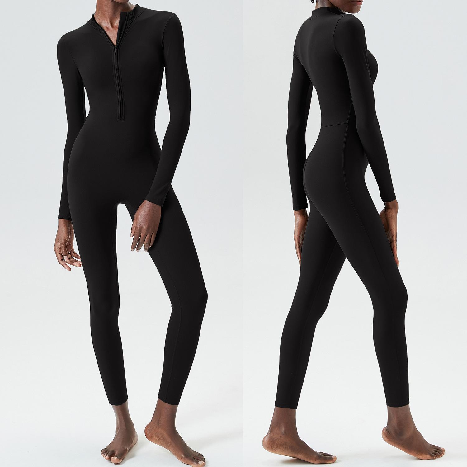 Женский спортивный костюм для бега, однотонный, цельный комплект для йоги, мягкий, облегающий комбинезон с длинным рукавом, спортивная одежда для тренировок XL чёрный