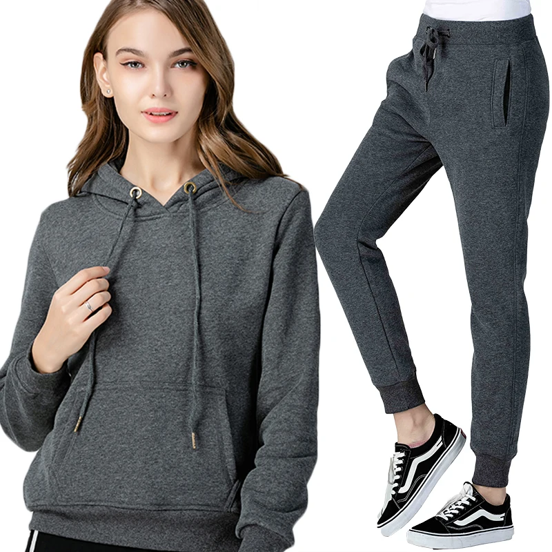 Женский спортивный костюм, однотонный хлопковый костюм-двойка, толстовка с капюшоном и штаны, Осень-зима, S-XXL
