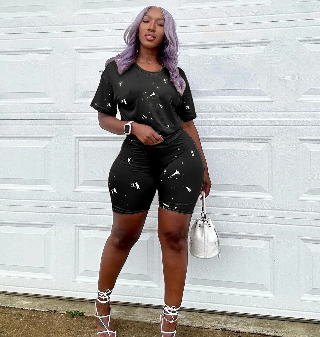 Женский спортивный костюм с принтом, футболка с коротким рукавом и шорты