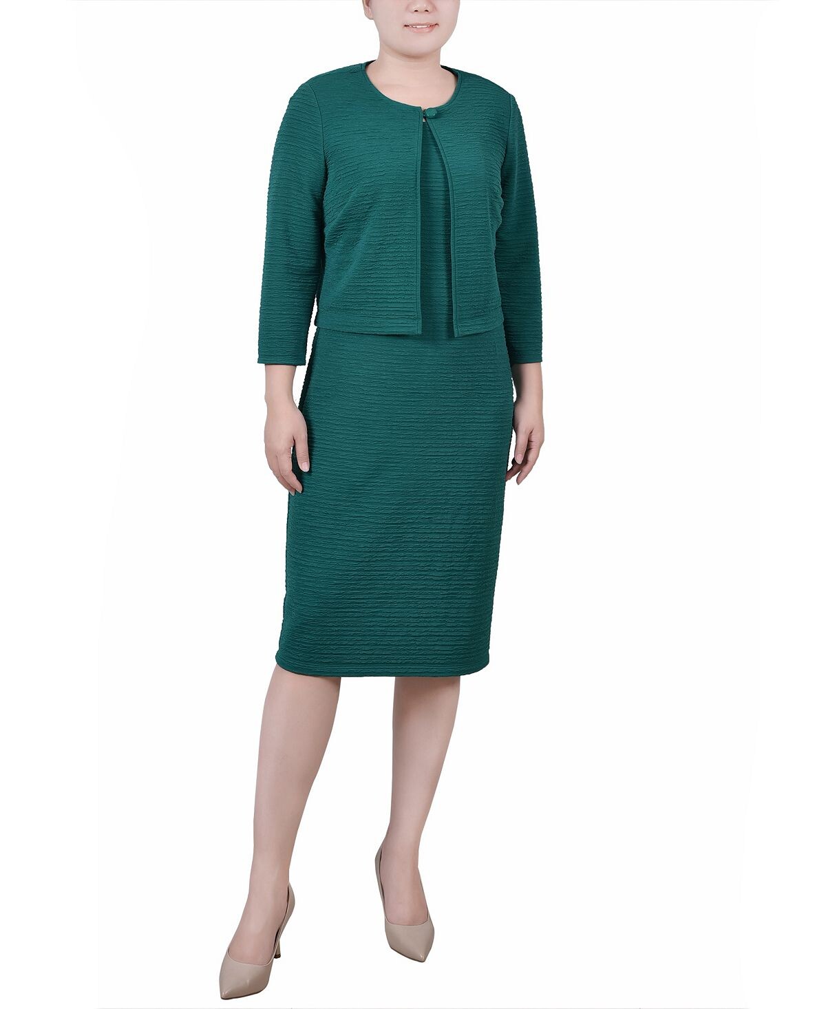 Женский текстурированный комплект из двух частей платья с рукавом 3/4 NY Collection, изумрудный