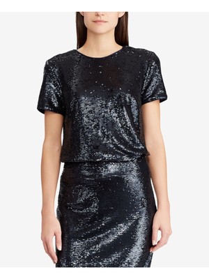 Женский темно-синий топ с короткими рукавами и круглым вырезом RALPH LAUREN, Navy