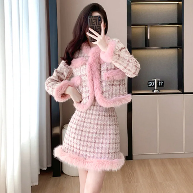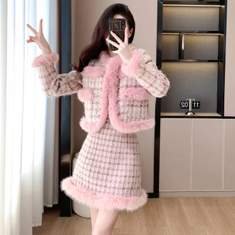 Женский теплый костюм из двух предметов, элегантный теплый шерстяной комплект из двух предметов, куртка и юбка, зима 2019