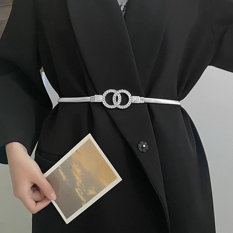 Женский тонкий металлический эластичный пояс с украшением в виде розовой цепочки на талии - идеально подходит для юбок и платьев