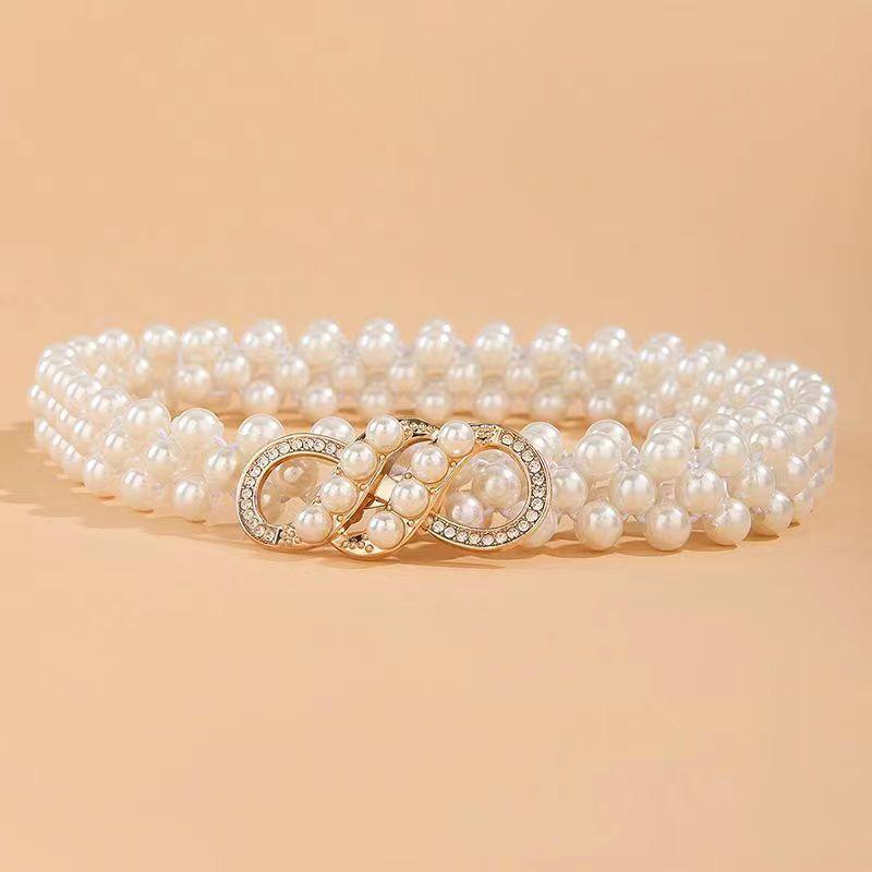 Женский тонкий пояс, эластичный, модный, со стразами, темпераментный, с жемчужинами, украшение на талию, цепочка, платье, корейская версия