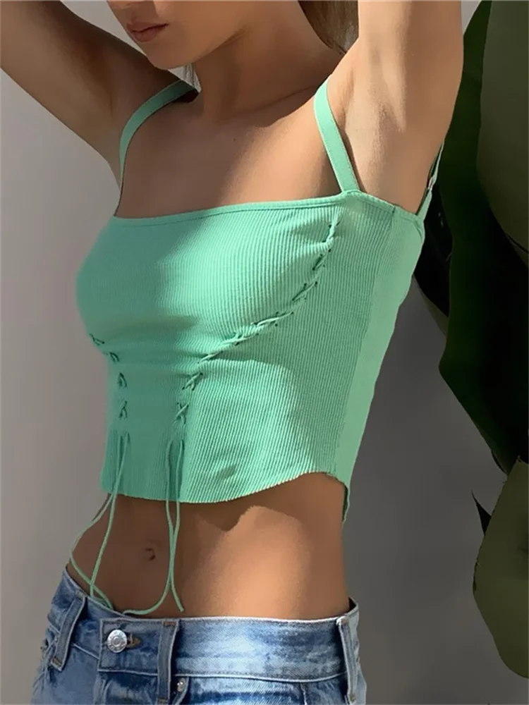Женский топ на бретелях-спагетти, с квадратным вырезом и открытой спиной