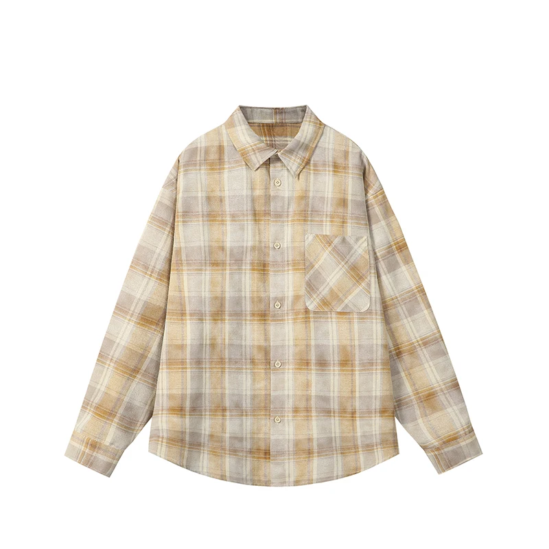 Повседневная клетчатая рубашка, мужские осенние свободные рубашки с длинным рукавом в стиле Харадзюку, корейские карманные повседневные рубашки для молодых мужчин и женщин