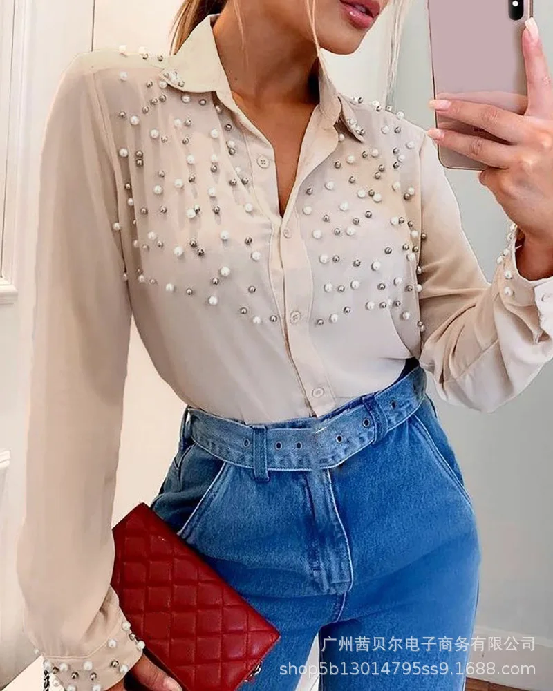 Женский топ с длинным рукавом, однотонный топ с вышивкой и отложным воротником, 2021