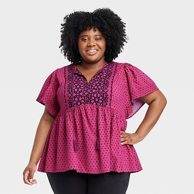 Женский топ с короткими рукавами - Knox Rose Пурпурный горошек