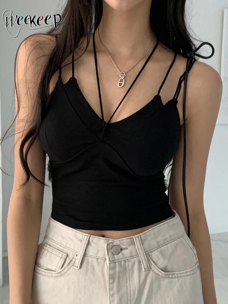 Женский топ с корсетом Weekeep, топ с подкладкой на груди, со шнуровкой, на бретельках-спагетти, летняя уличная одежда