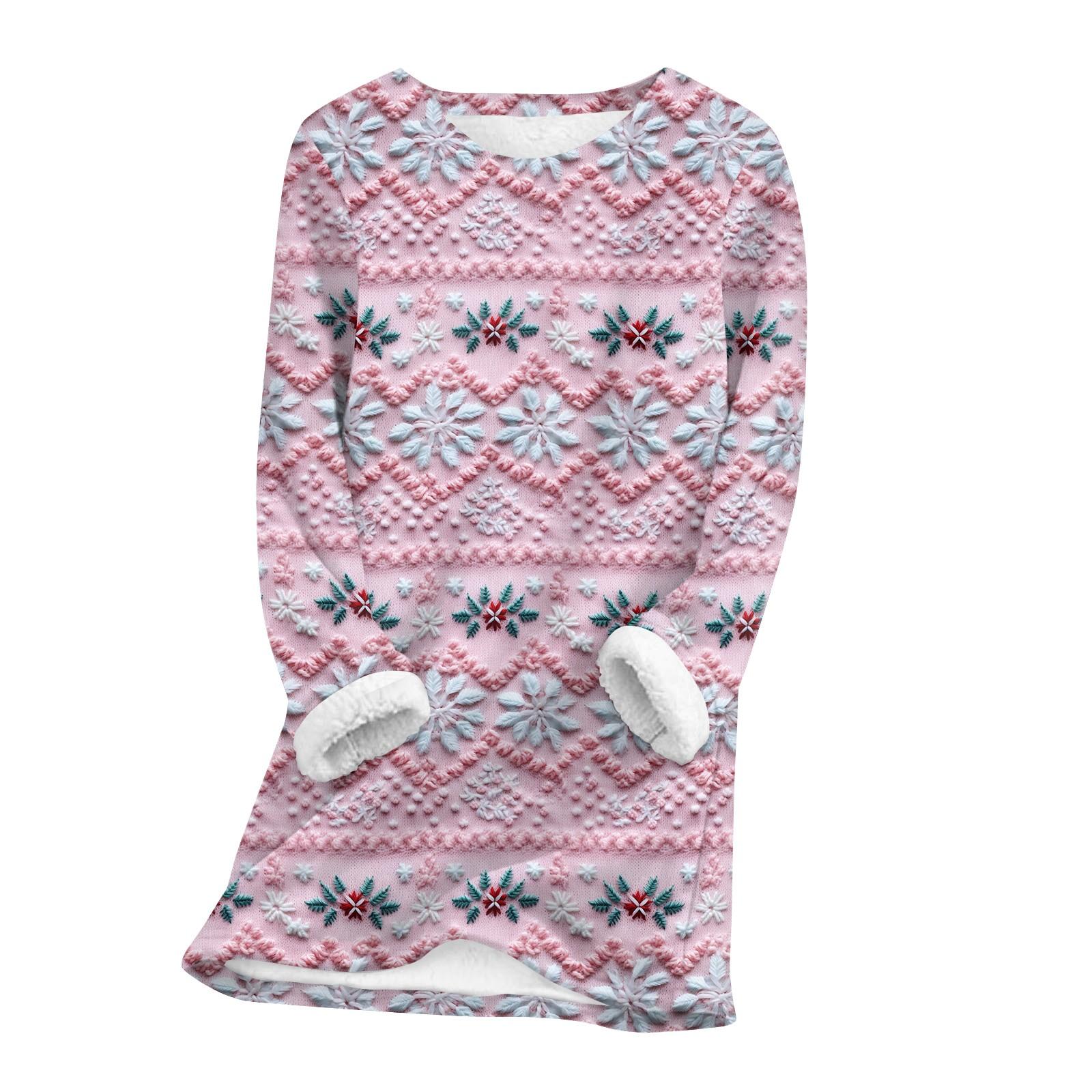 Женский топ с круглым вырезом, с принтом, утолщенный плюшевый кашемировый теплый длинный топ с длинными рукавами S розовый