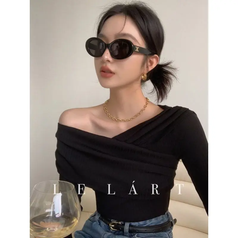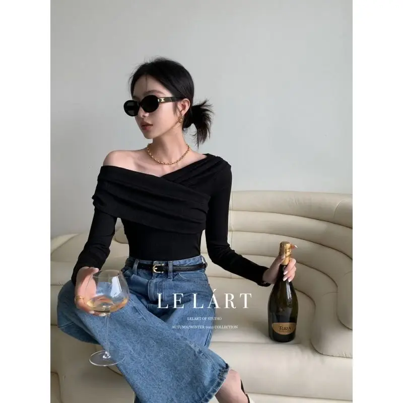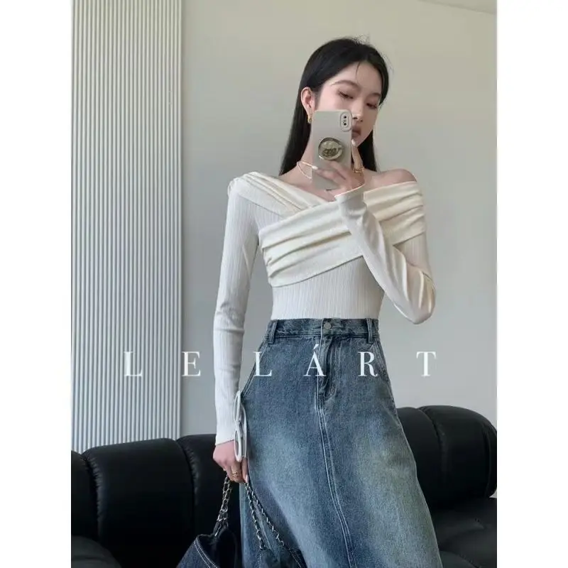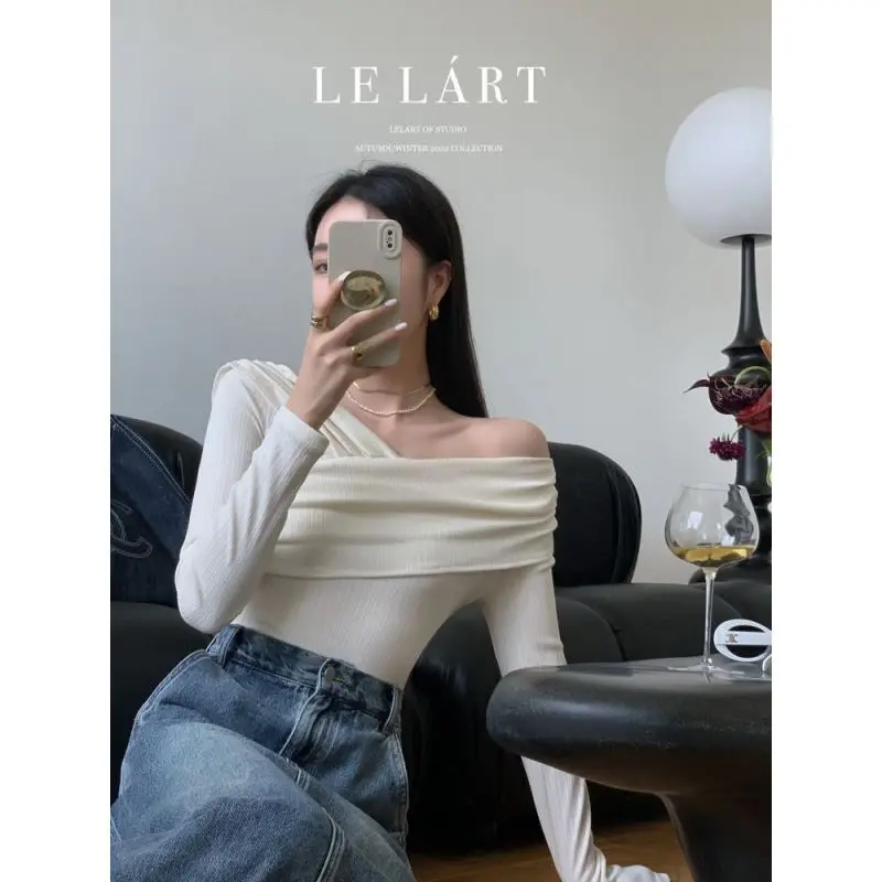 Женский топ с открытыми плечами BEENLE, футболка с длинным рукавом и открытыми плечами в Корейском стиле, весна-осень