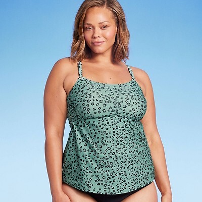 Женский топ танкини с пятнистым принтом и круглым вырезом - Kona Sol Green, Зеленый