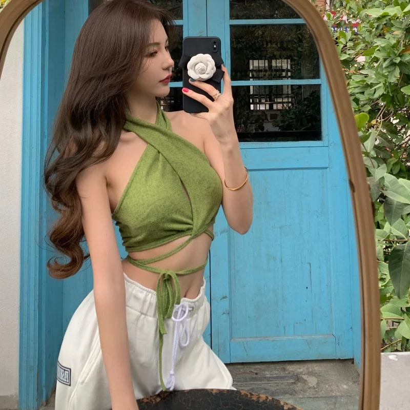 Женский топ-труба, жилет с перекрестными бретельками, короткий топ на бретельках, укороченный женский топ