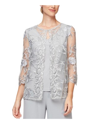 Женский топ ALEX EVENINGS Silver Stretch на подкладке с иллюзией Petites, Серебряный