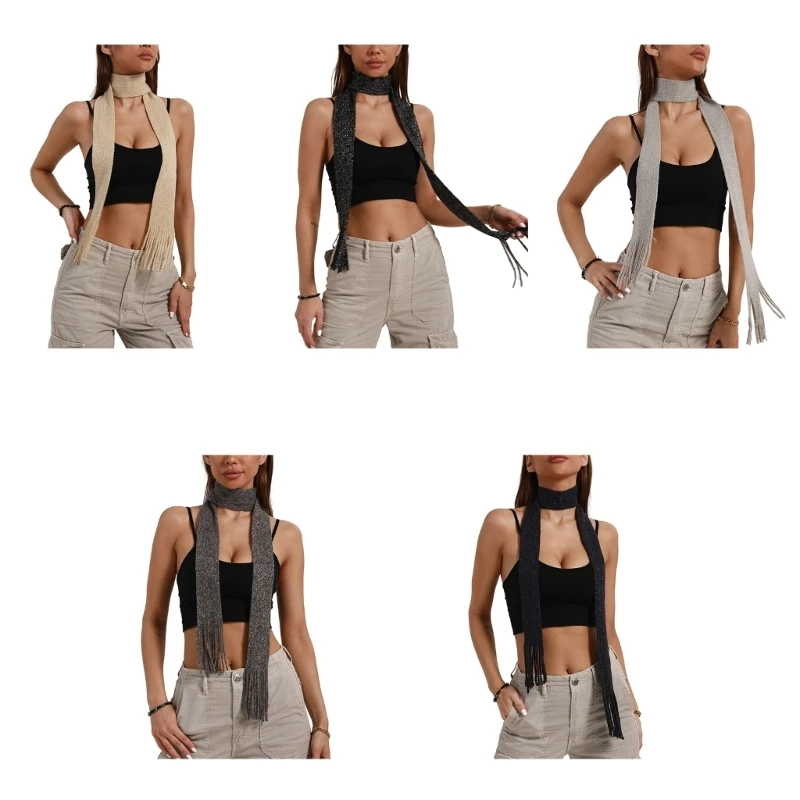 Женский тощий шарф, тонкий пояс-колье, блестящий длинный галстук, шарф, сумка с ручкой, обертка