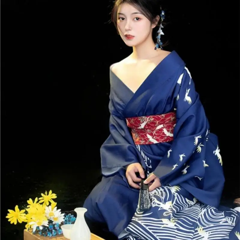 Женский традиционный кардиган-кимоно с вышивкой журавлей