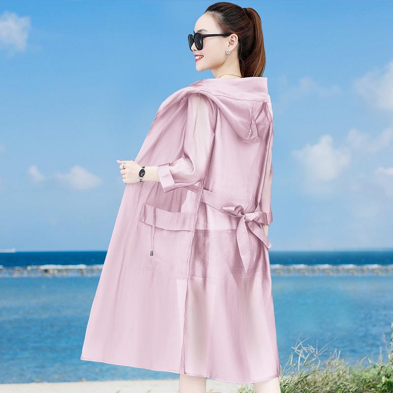Женский тренч с длинным рукавом для защиты от солнца - в корейском стиле, легкая и универсальная куртка длиной ниже колена. M розовый