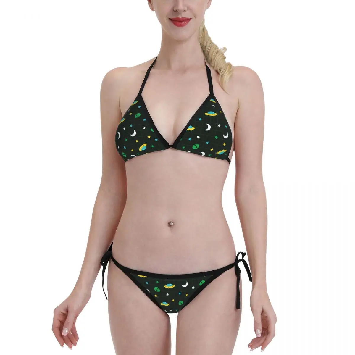 Женский треугольный купальник из 2 предметов, комплект бикини на шнуровке, Женский сексуальный купальник с лямкой на шее, бикини с пуш-апом з...