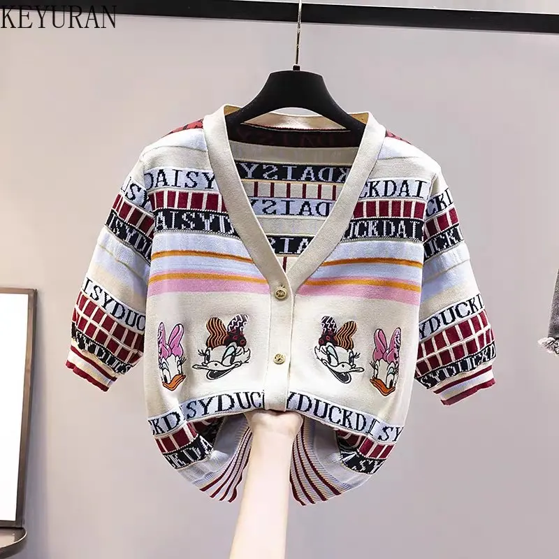 Женский трикотажный жаккардовый кардиган с коротким рукавом и надписью