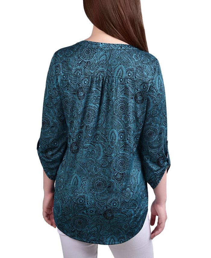 Женский трикотажный жаккардовый топ с отвернутыми рукавами 3/4 и язычком NY Collection, цвет Teal Whisper