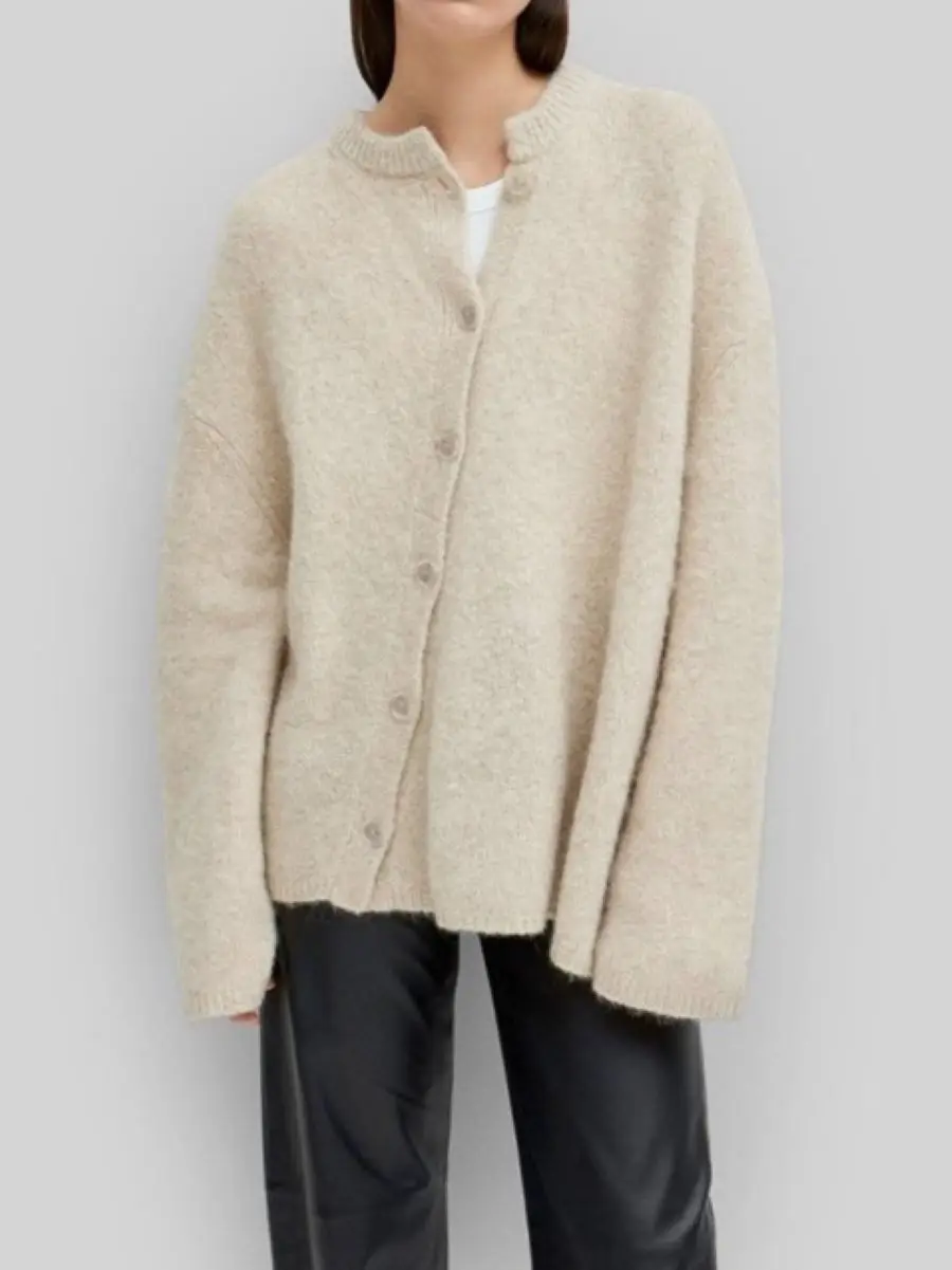 Женский трикотажный кардиган, асимметричный однобортный Свободный кардиган с О-образным вырезом и длинным рукавом, Осень-зима