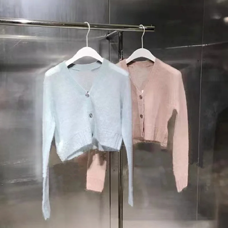 Женский трикотажный кардиган из шерсти и мохера, трикотажный свитер с V-образным вырезом, весна-осень 2021