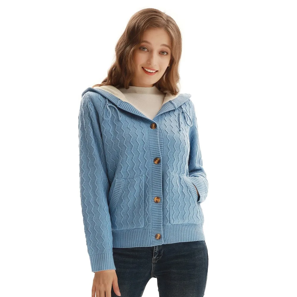 Женский трикотажный кардиган на флисовой подкладке, с длинным рукавом и капюшоном