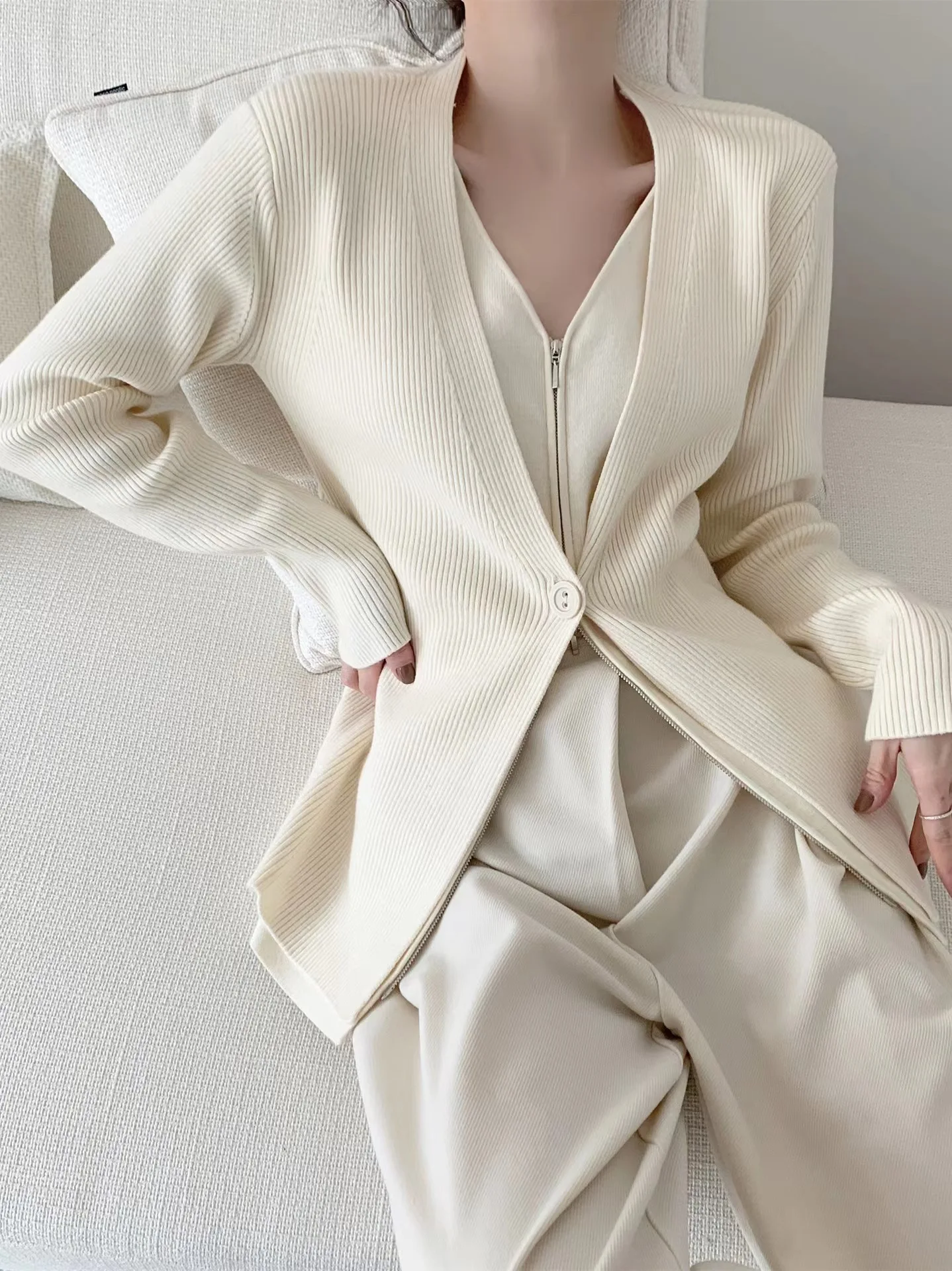 Женский трикотажный кардиган, однобортный свободный свитер с V-образным вырезом и длинными рукавами