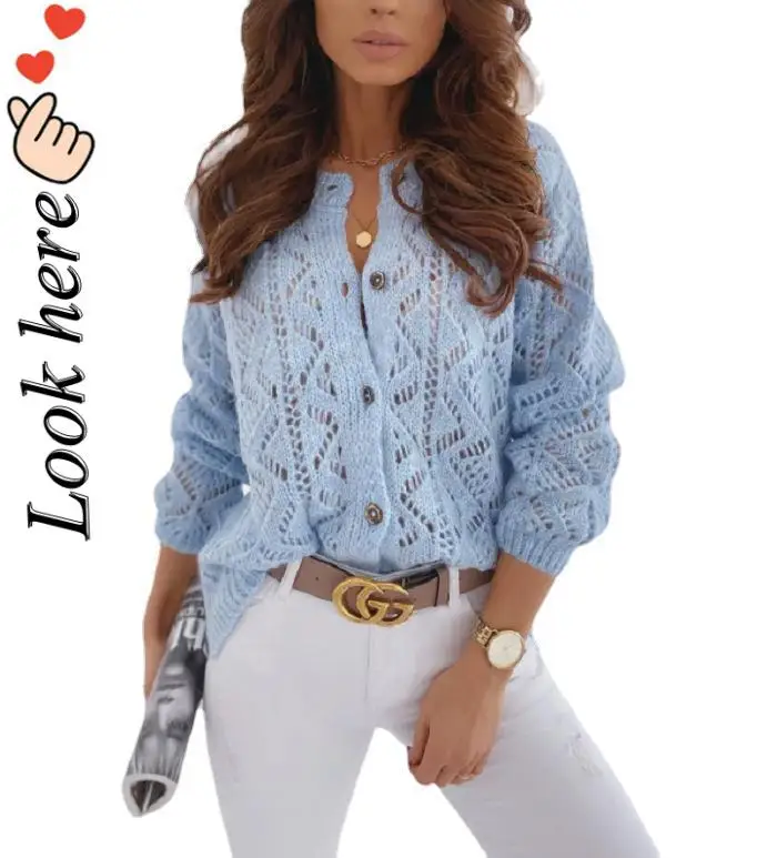 Женский трикотажный кардиган с глубоким V-образным вырезом и длинным рукавом