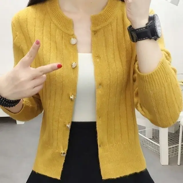 Женский трикотажный кардиган с длинным рукавом, свободного покроя