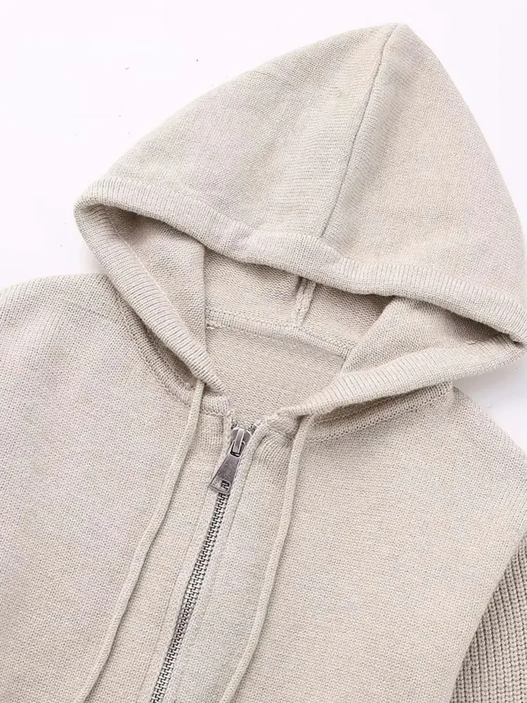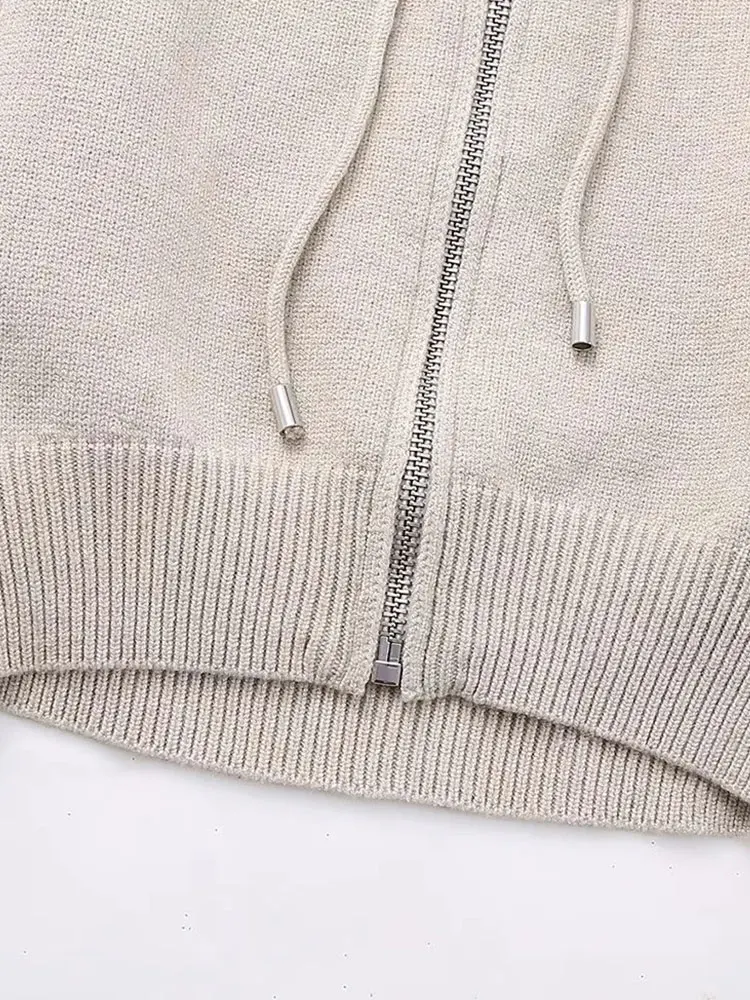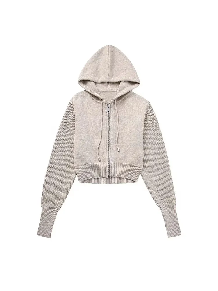 Женский трикотажный кардиган с капюшоном, на молнии, с длинным рукавом