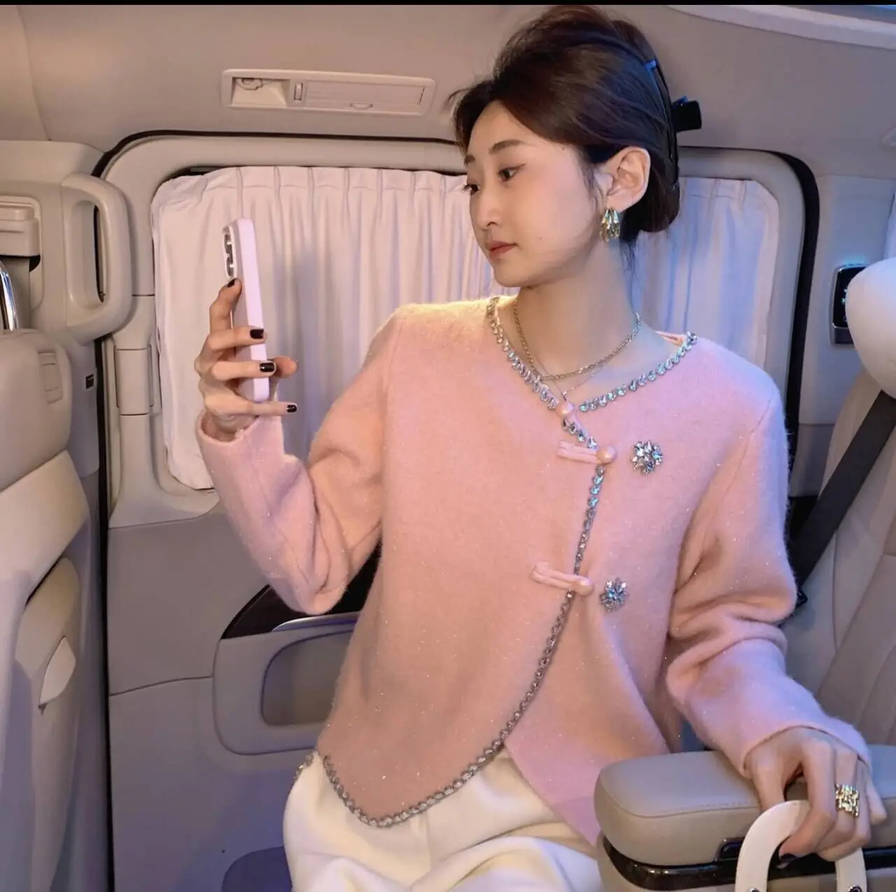 Женский трикотажный кардиган с пуговицами-лягушками, розовый кардиган в китайском стиле, Осень-зима